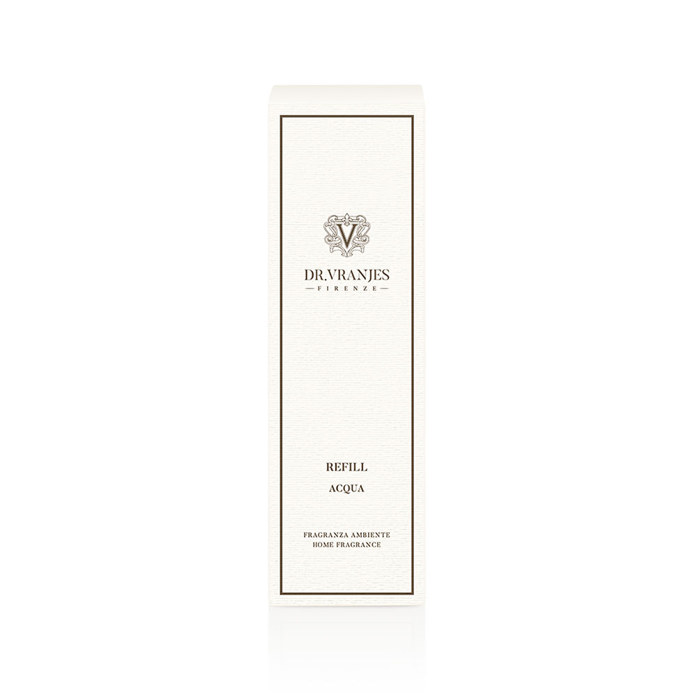 Difuzor Acqua ima nežno morsko dušo. Naj vas njegova svežina popelje v harmonijo, zahvaljujoč zgornjim notam bazilike, morskim valovom v srcu in belemu mošusu v osnovi, ki dopolni vohalno izkušnjo.