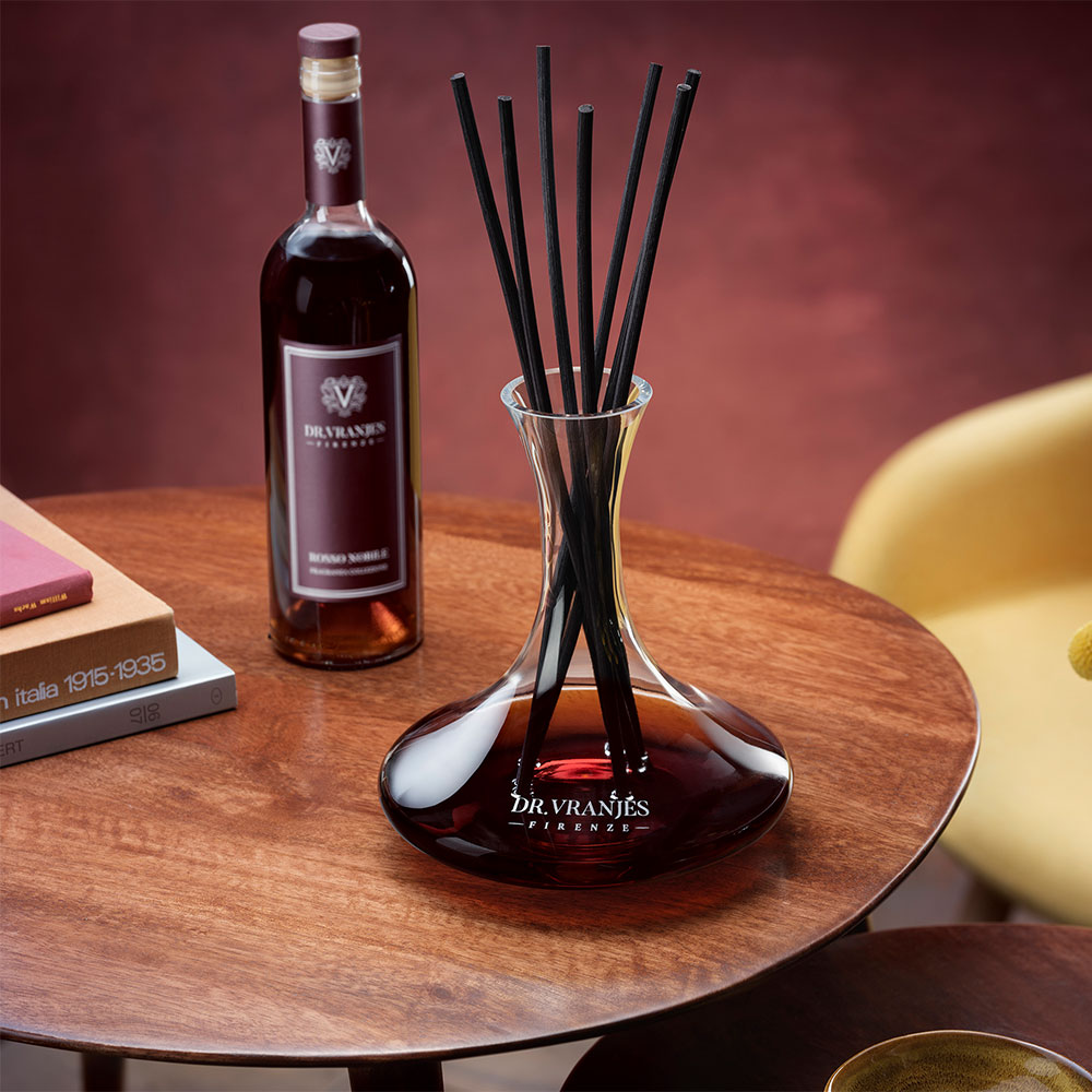 V prestižnem ročno izdelanem kristalnem dekanterju vsebuje ikonično dišavo Rosso Nobile. Osvaja oko in vonj ter personalizira najprefinjenejše bivalne prostore.