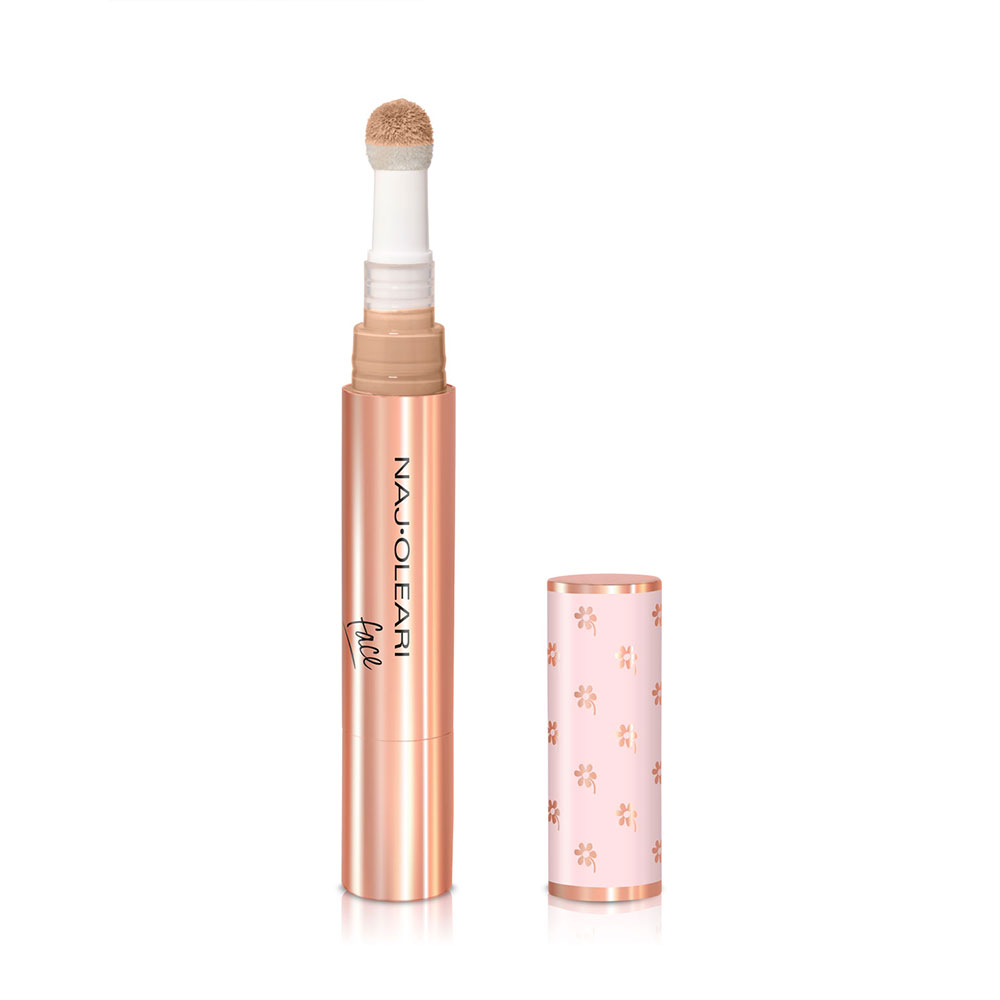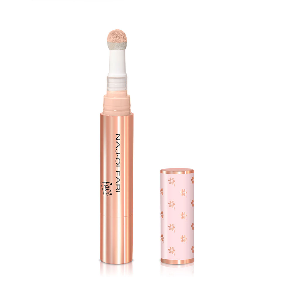 Korektor brez prenosa* s čutno teksturo in nežnim nanosom, ki se zlije s kožo, ne da bi jo obtežil ali pustil sledi.