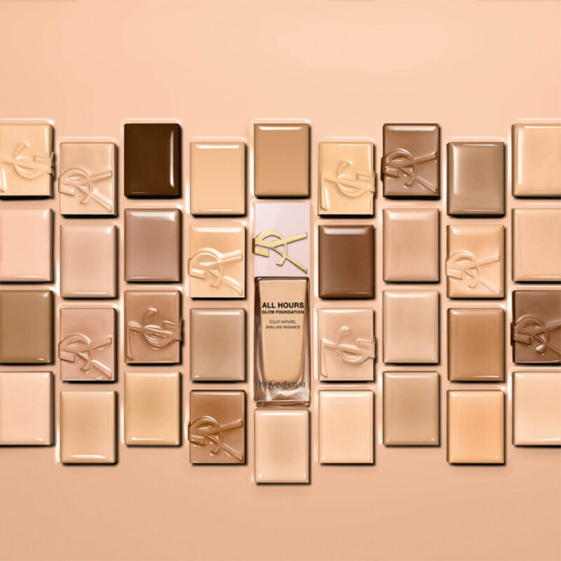 Razkošno stekleničko, zaščitni znak elegance YSL, krasi zlati logotip Cassandre na prozorni silhueti z ultra sijočim biserno roza pokrovčkom. Ta izvrstna oblika odraža sijočo lepoto v steklenički. Sprejmite svež in sijoč zaključek, puder ALL HOURS Glow vam bo dal občutek samozavesti in sijaja ves dan.