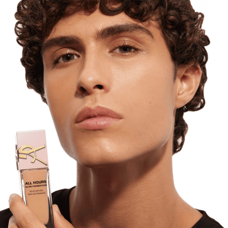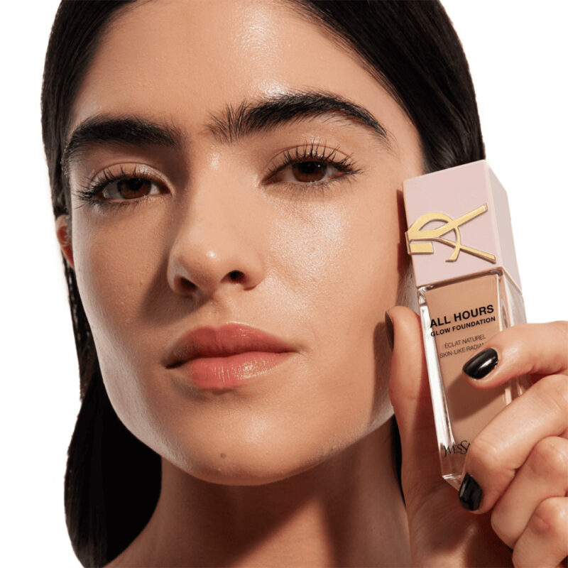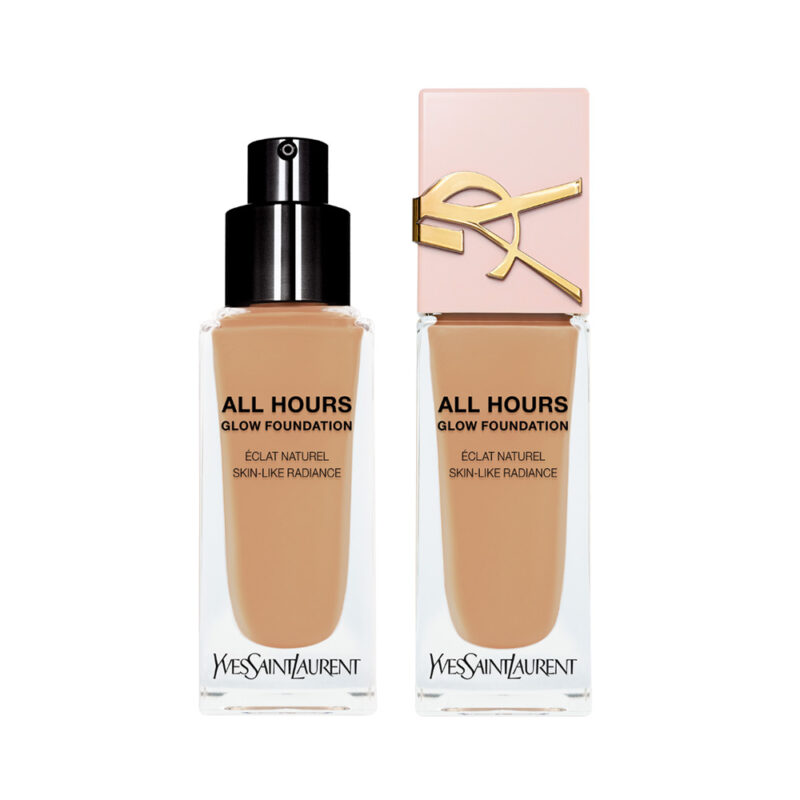 Izkusite preobrazbeno moč tekočega pudra Yves Saint Laurent ALL HOURS Glow, mešanice za nego kože in ličila, ki zagotavlja brezkompromisno sijočo polt. Ta inovativni puder brezhibno združuje pigmente, ki posnemajo kožo, z razkošno serumsko osnovo in ustvarja vrhunski couture sijaj za sijočo polt. ALL HOURS Glow ni le ličila, temveč vašo kožo napolni s koncentriranim odmerkom aktivnih sestavin, vključno s hialuronsko kislino in niacinamidom, za vidno preobrazbo.