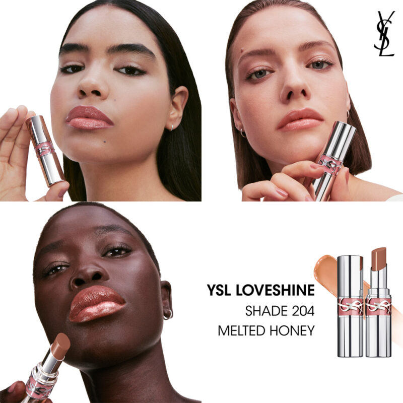 Ikonična šminka je zdaj obogatena s šestimi negovalnimi olji in elegantnim srebrnim zaključkom. YSL Loveshine Lip Oil Stick zagotavlja do 24 ur hidratacije in zaščite. Formula s 60 % olja in figove pulpe se stopi na ustnicah za takojšnjo hidratacijo in sčasoma mehkejše, navlažene ustnice. Izbirate lahko med vsakodnevnimi nude odtenki do poudarjenih vijoličastih in roza tonov.