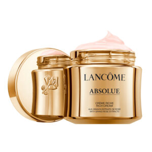 Bogata krema Absolue, obogatena z izvlečki treh vrtnic: Lancôme Rose™, Centifolia Rose in Damascena Rose.