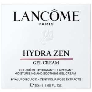 Lancôme Hydra Zen vlažilna in pomirjujoča gel krema za obremenjeno kožo s čistimi izvlečki vrtnice.