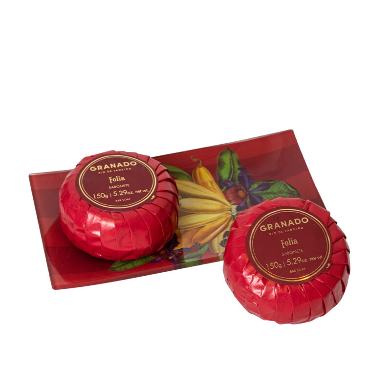 Folia je praznovanje kulturne mešanice tipičnih brazilskih praznovanj. Intenzivna in edinstvena cvetlična dišava, ki raziskuje nežno plat sladkega korena v kombinaciji s floro osmantusa. Pridih vanilije poudari njeno osebnost in razkrije edinstveno intenzivnost vonja. Komplet Folia Duo vsebuje dve trdi mili in steklen pladenj, okrašen z značilnimi ilustracijami kolekcije.
