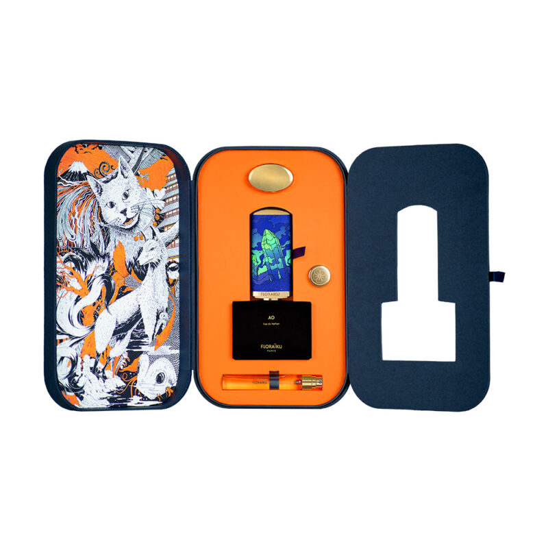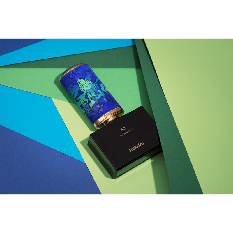 AO v japonščini pomeni barvo med modro in zeleno, odtenek, ki se razvija. Tako kot se dragulji lesketajo glede na svetlobo in čistost kamna. Tukaj stojijo fasetirani kot dišava in razkrivajo vrsto mehkih odtenkov.