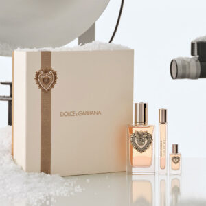 Ta komplet, predstavljen v ekskluzivni škatli iz slonovine in zlata, okrašeni z legendarnim Svetim Srcem, vsebuje dišave iz kolekcije Devotion. Natančna pozornost do detajlov očara čute in slavi brezčasno eleganco Dolce&Gabbana.