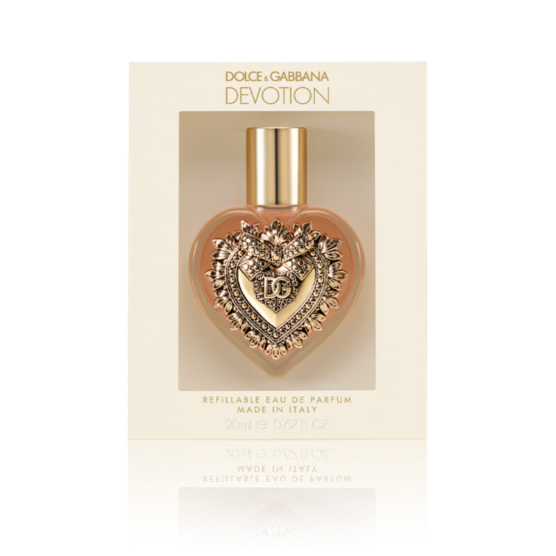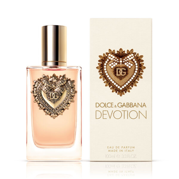 Vonj dišave Dolce&Gabbana Devotion Eau de Parfum je čutno potovanje, zapeljivo in spodbudno, ki lahko obudi pozitivne vrednote, ki jih Dolce&Gabbana ceni, simbolizirane s pečatom Presvetega Srca.