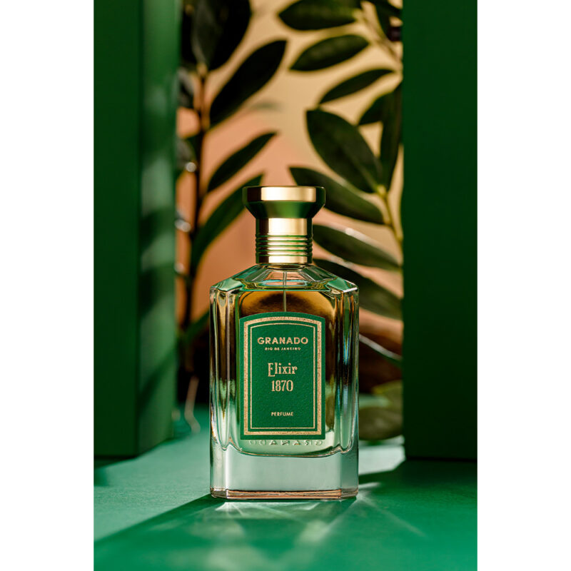 Elixir 1870 je sodobna in živahna stvaritev, ki obuja stoletno brazilsko tradicijo, eleganco in pobeg v naravo. Citrusne, aromatične in lesne note nas popeljejo v gore Rio de Janeira, kjer je José Antônio Coxito Granado, ustanovitelj blagovne znamke, gojil zelišča in rože, uporabljene v formulah izdelkov.