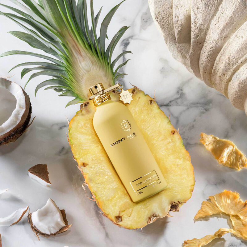 Oud Sapparot nas popelje na strastno potovanje, kjer se sočen tajski ananas meša z dimljenim oudom. Žafran in cejlonski cimet razplamtita ogenj, usnje in srebrna breza pa dodata globino. Sladka vanilija, kokos in beli mošus pomirjajo in zaokrožujejo to dišečo stvaritev.