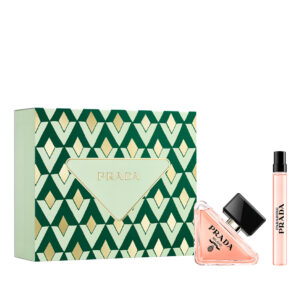 Steklenička: Ponovno napolnilna steklenička dišave Prada Paradoxe Eau de Parfum na novo izumlja najbolj ikoničen simbol blagovne znamke: trikotnik. Nagnjena, a močno prizemljena, odmaknjena, a stabilna, steklenička tvori estetsko pravi kot, ki se optimistično dviga od dna do pokrovčka. Radikalno trikotno obliko stekleničke omilijo zaobljeni vogali, nežna koralno roza barva dišave pa je v nasprotju z globoko črno barvo grba Prade. Ženstvena, a hkrati prelomna – in takoj prepoznavna – steklenička je dopolnjena z zlato pumpico, ki odraža zlati logotip, vtisnjen na črnem pokrovčku. Steklenička dišave Prada Paradoxe Eau de Parfum je zasnovana tako, da omejuje težo in uporabo stekla, škatle pa imajo certifikat FSC™ MIX, kar zagotavlja bolj trajnostno izbiro papirja in kartona. Celotna linija Prada Paradoxe je polnilna, kar omogoča manjšo porabo embalažnega materiala. Z nakupom 100 ml polnila namesto ponovnega nakupa dveh 50 ml stekleničk Prada Paradoxe Eau de Parfum prihranite 44 % stekla, 100 % kovine, 67 % plastike in 61 % kartona.