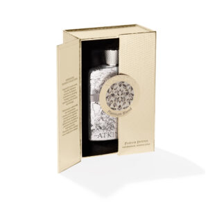 Vsaka steklenička ima edinstven vzorec, ki zagotavlja, da ni nobena dva dizajna popolnoma enaka. Embalaža je izdelana kot dragocena darilna škatla, okrašena z aluminijastim medaljonom z drobnimi lakiranimi okraski.