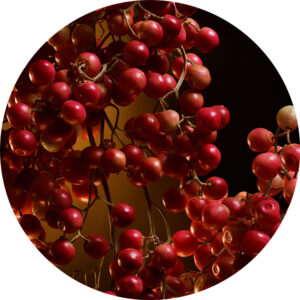 Kompozicijo odpre živahen pridih rožnatega popra, ki vnese večplastno energijo in pridih nepričakovanosti.