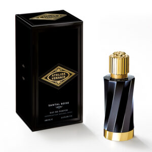 Dišava Santal Boisé je narejena iz šrilanške sandalovine. Mlečna in balzamična dišava je pridobljena iz korenin in srca lesa. Cypriol, nežno cvetoče zelišče, parfumu doda značilno lesno, dimljeno in rahlo oud noto. Navdihnjen z družinskimi temami, je ustvarjalec Christophe Raynaud lesne note obogatil z razkošnim, jantarnim gurjunom in žafranom. Linija dišav Atelier Versace je sestavljena iz dvanajstih edinstvenih vonjev parfumske vode. Na kiparsko stekleničko je vgravirano ime dišave, na embalaži pa je logotip Atelier Versace v notranjem ogledalu. NOTE: sandalovina, Cypriol.