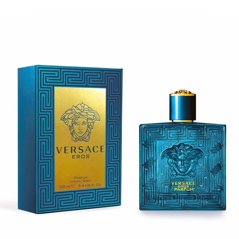 Moška in samozavestna dišava Eros Parfum je dišava za pogumne in strastne moške. Čutna dišava združuje lesne, orientalske in sveže note ter ustvarja močan parfum, ki spominja na Erosa – boga ljubezni. Nova dišava je predstavljena v modro-zlati geometrijski steklenički z otipljivimi detajli Meduze in Grka.