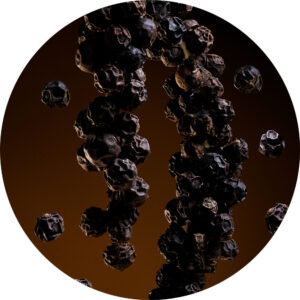 Črni poper se sreča z živahno pomarančo Tarocco ter ustvari začinjen, svež in magnetičen uvod.